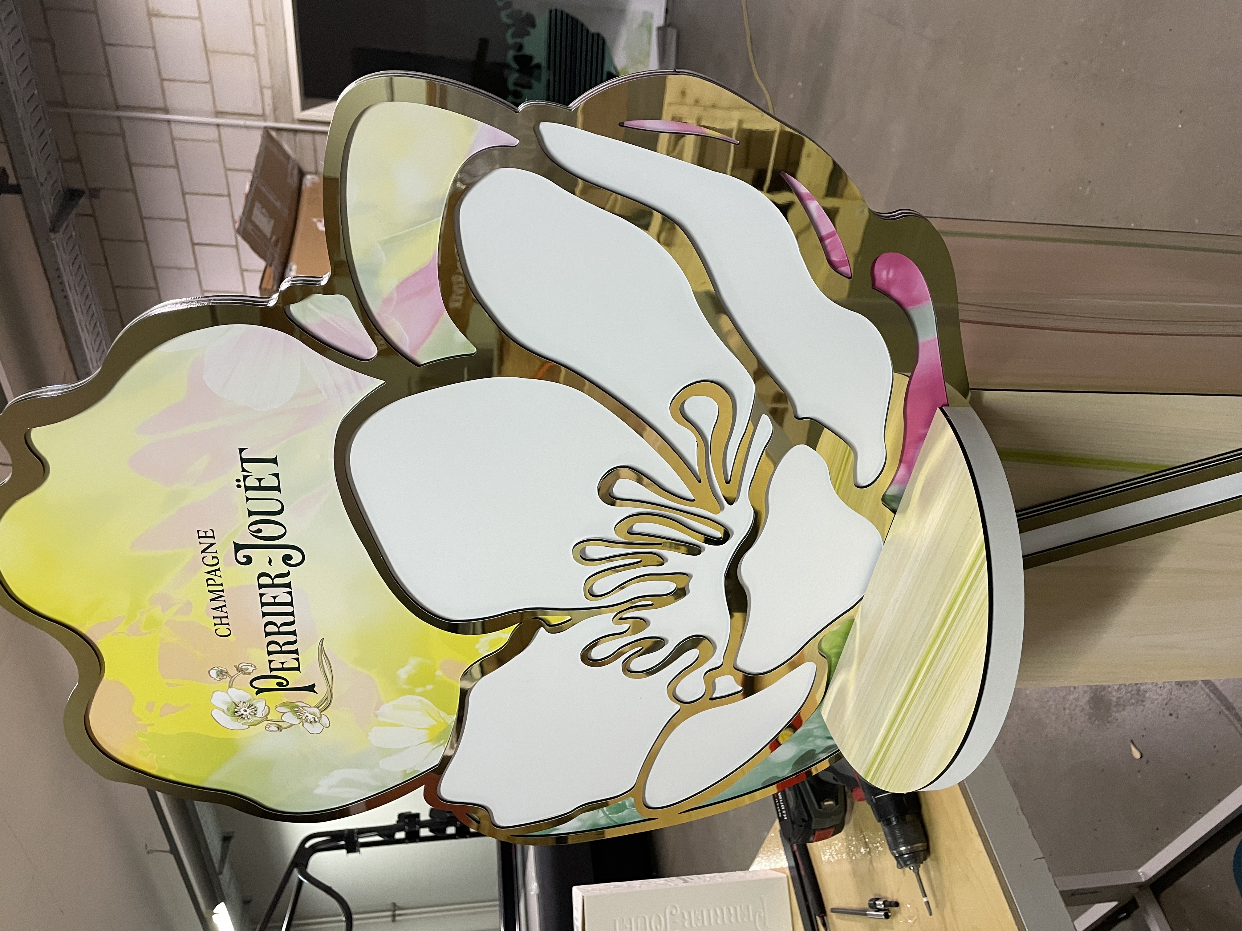 Nous réalisons dans nos ateliers des pièces uniques et sur-mesure. Travail du bois, découpe métal, broderie tissu, façonnage plexiglas... pour susciter l’émotion de vos clients.